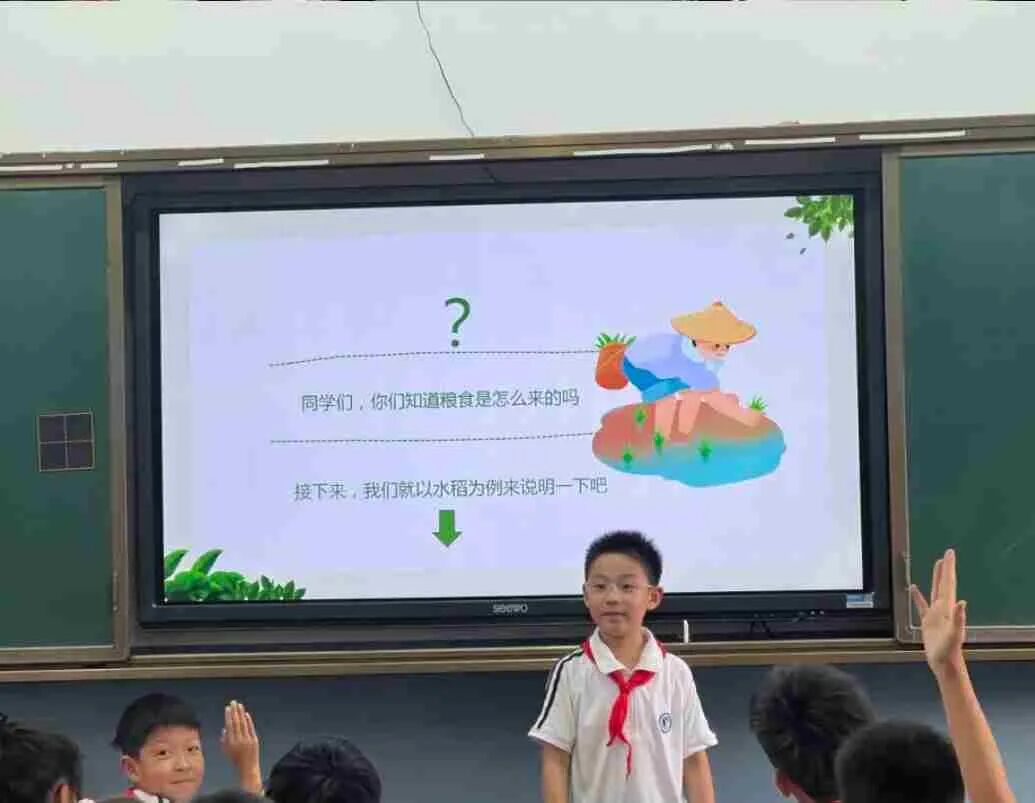 而在金卫小学,四(1)小叮当中队在升旗仪式上宣读了节粮倡议书,号召全体队员争做“光盘行动”的践行者、粮食知识的传播者和劳动精神的传承者。全体队员齐声唱响《悯农》,在悠扬的旋律中重温耕耘的艰辛,深刻感受“粒粒皆辛苦”的内涵。