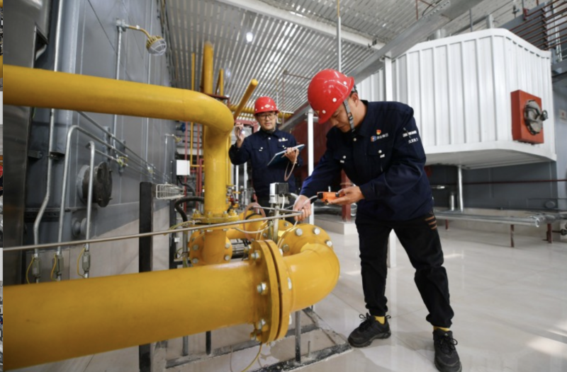 在设备保障方面,各供热单位已完成冷态运行与打压试水工作。日前,在北京仁和热力中心,工作人员实时监控压力表数值,精准调节管网压力,设备巡查与接口检测同步开展,确保每一处阀门、接口运行正常。