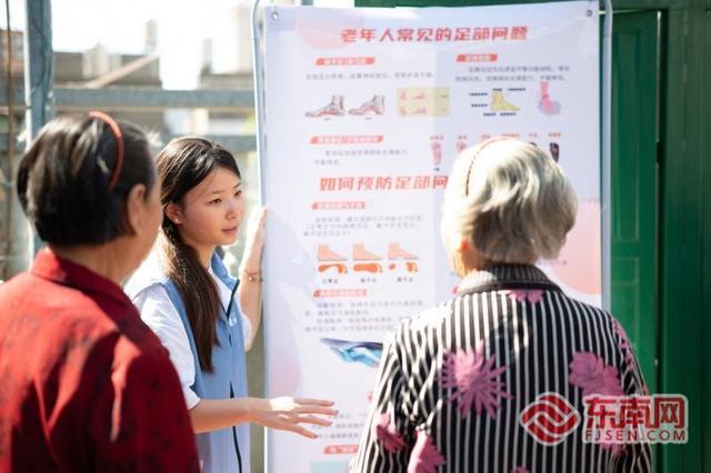 学生化身“健康顾问”,为老人科普足部健康知识。
