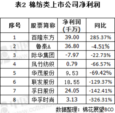从棉纺上市企业半年度净利润来看,以下8家企业中只有1家企业百隆东方净利润同比增长,其余企业半年度净利润同比均下跌,其中以华孚时尚和孚日股份跌幅最大,分别为326.31%和142.41%。不过,8家企业中净利润只有际华集团为负值,其余企业净利润均为正值,以百隆东方净利润最大,为3.9亿元。