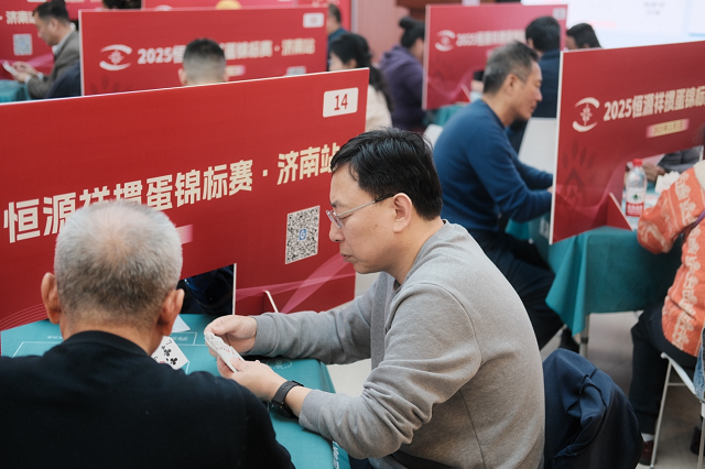 赛场上,选手们展现出极强的战术素养与团队默契。济南站中,老鬼/李宝红这对搭档,在多轮胶着战中脱颖而出,最终获得冠军。山东选手董能能说:“掼蛋不仅是牌技比拼,更考验搭档间的信任与配合,这正是掼蛋运动的魅力所在。”