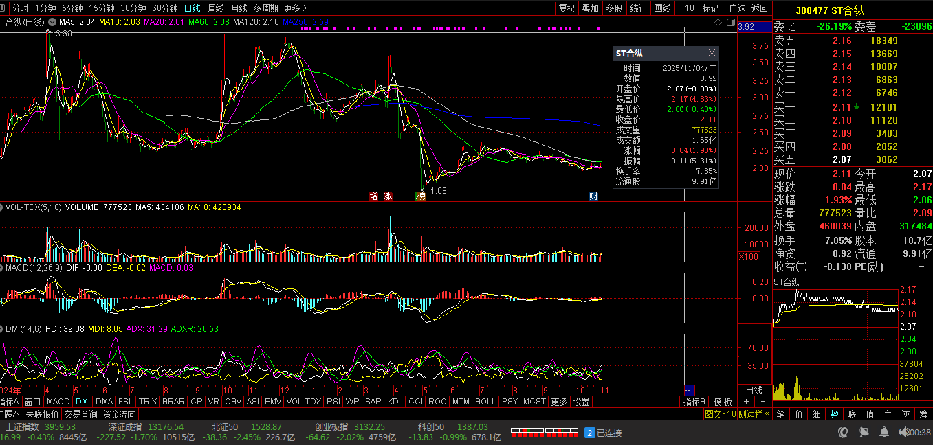 主旋律:300477 ST合纵 盘中 03涨