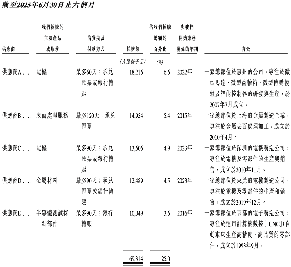 同期,来自五大供应商的采购额分别占其采购总额的约43.7%、26.1%、27.8%、25.0%。
