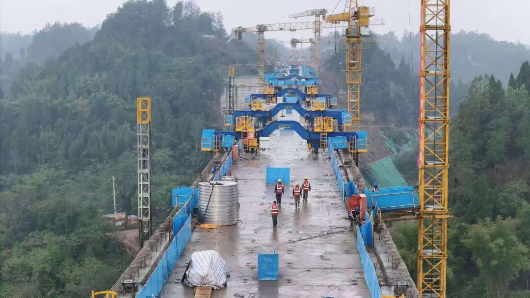 据中铁十四局成渝中线项目经理孙鑫广介绍,一碗水双线特大桥最高墩达63.5米,相当于21层楼高,建设团队利用“液压爬模技术”进行混凝土浇筑,逐层逐级控制墩身垂直精度,通过智能监测功能,实时监测爬模姿态和墩身变形,确保高墩施工“毫米级”精度控制。同时,创新应用智能悬臂造桥机,对模板实施智能纠偏,且保障了梁体线形质量,为大跨度梁体精准合龙提供技术支撑。