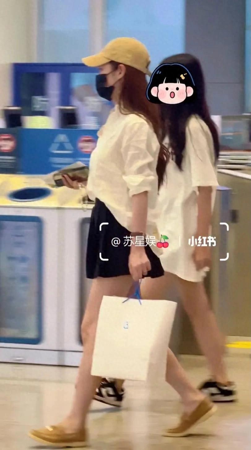 马筱梅穿着白色衬衣和黑色短裙,她独自带着两个孩子回台湾。她戴着棒球帽,侧颜很漂亮。小玥儿和小箖箖乖巧的跟在马筱梅身后,一家三口看着关系很好。