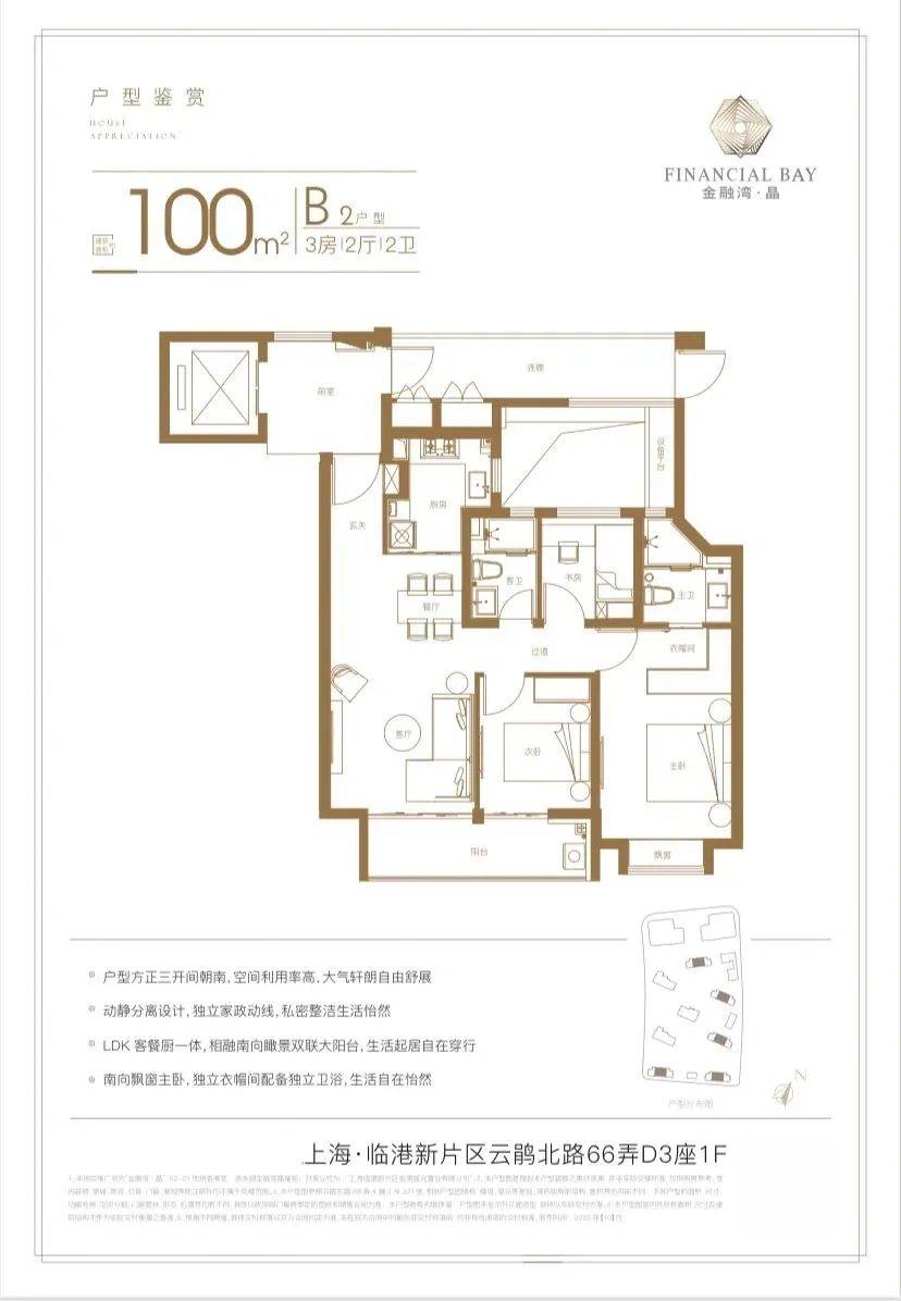 金融湾·晶坐落于上海市浦东新区临港新片区滴水湖金融湾核心区,环湖北二路与海港大道交汇处,由国企陆家嘴集团匠心打造。项目总建筑面积约38.4万平方米,规划有16栋24-32层现代风格高层住宅,总户数1860户,产权年限70年。项目占据临港新片区“一城一带一湾”战略布局中的金融湾核心,是临港推进开放型特殊经济功能区建设的核心承载区。