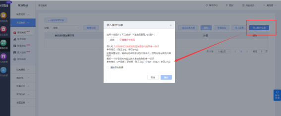 可选择将名称展示区域信息展示为图片内容,也可批量导入图片名单