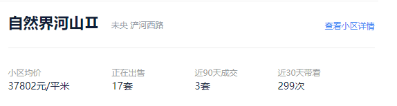 自然界河山最新二手房挂牌价达37802元/㎡,且90天内就成交3套;自然界江月挂牌价更是高达59037元/㎡。