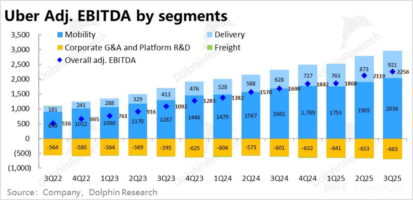 2)另外则是在广告变现上(尤其是配送业务),Uber 目前尚没有重复渗透,尤其是生鲜日杂的增长会进一步扩大公司的广告变现空间。