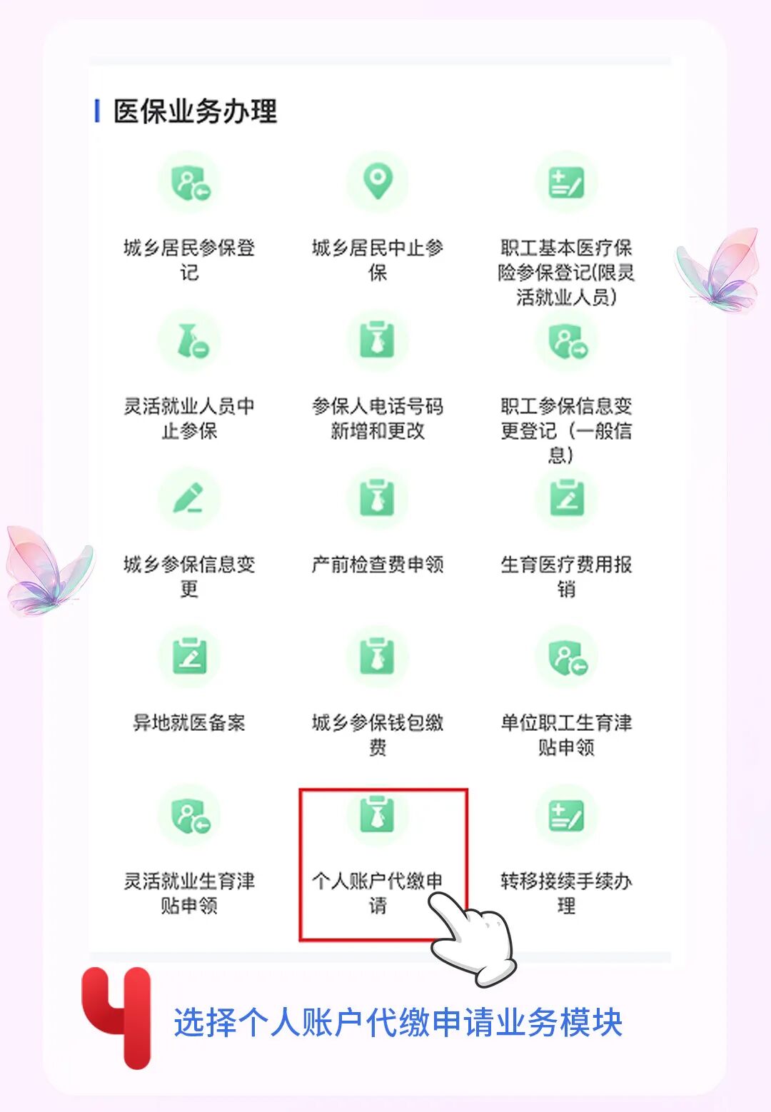 选择“个人账户代缴申请”。