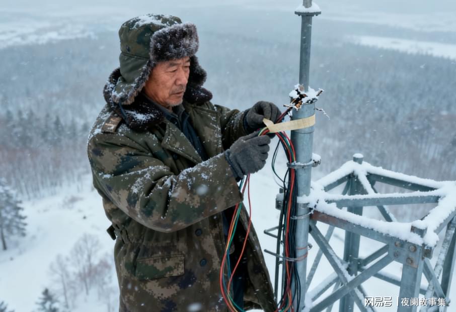 用最原始,也最危险的搭线方式,修复了那根被狂风和冰雪,彻底损坏的天线。