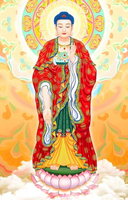 阿弥陀佛微笑着说:"善哉善哉!你能发菩提心,修持净土法门,接引众生往生极乐,功德无量。你再过十三年,就会往生到我的国土。"