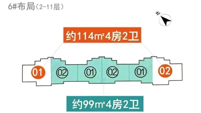 - 小高层户型:99㎡和 114㎡的小高层户型,层高 3 米,空间开阔。同样具备全朝南、动静分离的优点,大尺度双联阳台进一步提升居住舒适度。114㎡户型可根据家庭需求,合理规划空间,打造舒适的居住环境,如设置宽敞的主卧套房、独立书房等。