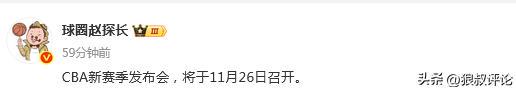 北京时间11月6日,根据媒体人“球圈赵探长”的报道,CBA公司将在本月26号召开新赛季发布会。