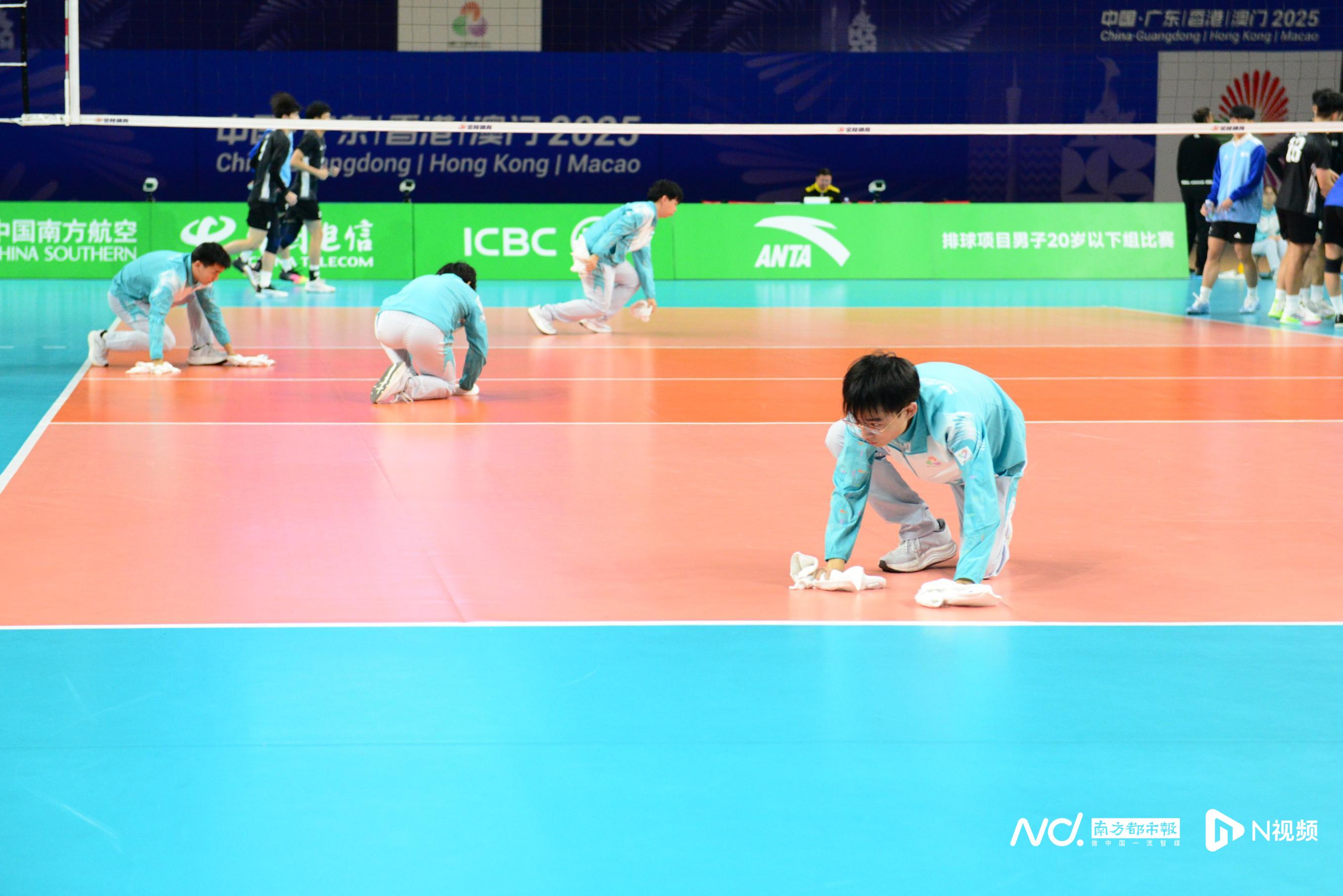 于是,在运动员们一次次精彩的传球与扣杀之间,总有这些反应迅捷、配合默契的蓝色身影反复穿梭。而在紧张的比赛节奏中,也流淌着温暖的瞬间。“每次我们上前擦地或捡球时,总能收获运动员们一句真诚的‘谢谢’,”赖俊武分享道,“这份来自运动员的尊重与善意,让所有的汗水都有了价值。”