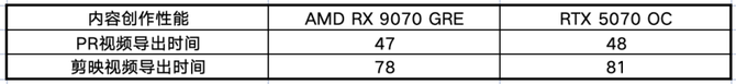 后续我们使用同样的素材进行视频导出测试,可以看到AMD RX 9070 GRE还略微快了几秒的时间,对于绝大部分的视频剪辑用户而言,AMD RX 9070 GRE的后期内容创作性能表现足够出色,满足绝大部分用户的内容创作需求。