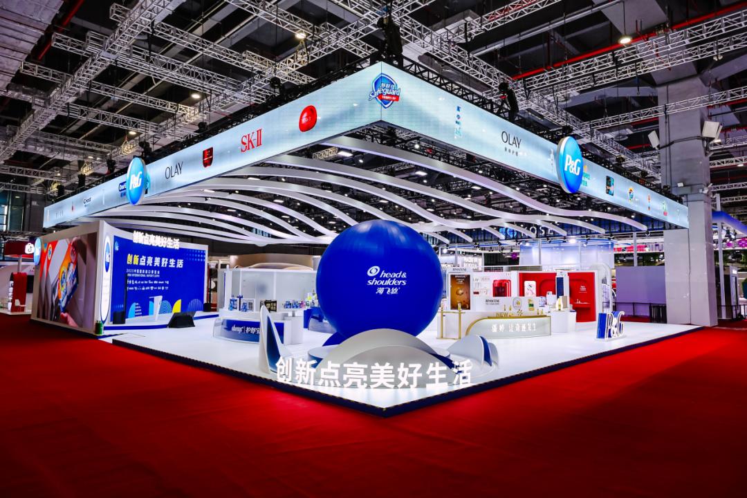 宝洁以“创新点亮美好生活”为主题,展台设计以“全链路创新可视化”为核心构建两大核心区域——数智创新引擎区、可持续发展展区。