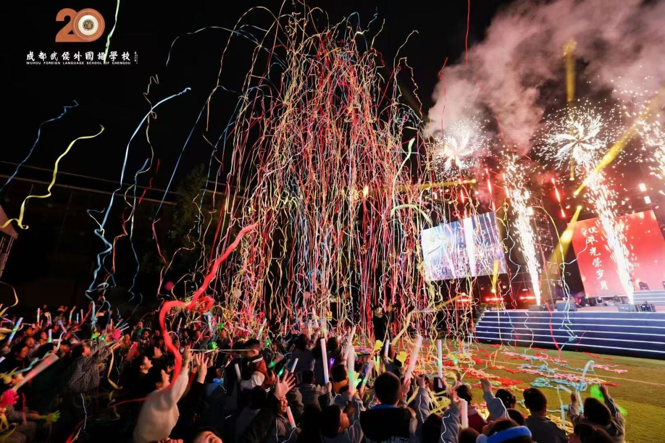 下午18:30,成都武侯外国国语学校建校20周年庆典活动隆重启幕。