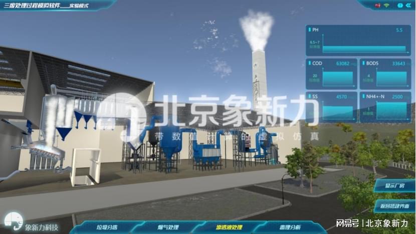 北京象新力根据《三废处理工程技术手册》等课程的教学内容,以国内先进的生活垃圾处理处置方法为设计原型,研发了环境工程三废处理虚拟仿真软件,模拟实际的垃圾焚烧工艺,以及二次污染物处理工艺,提供真实的工程场景实验平台,提高学生实际工程能力,培养创新意识。