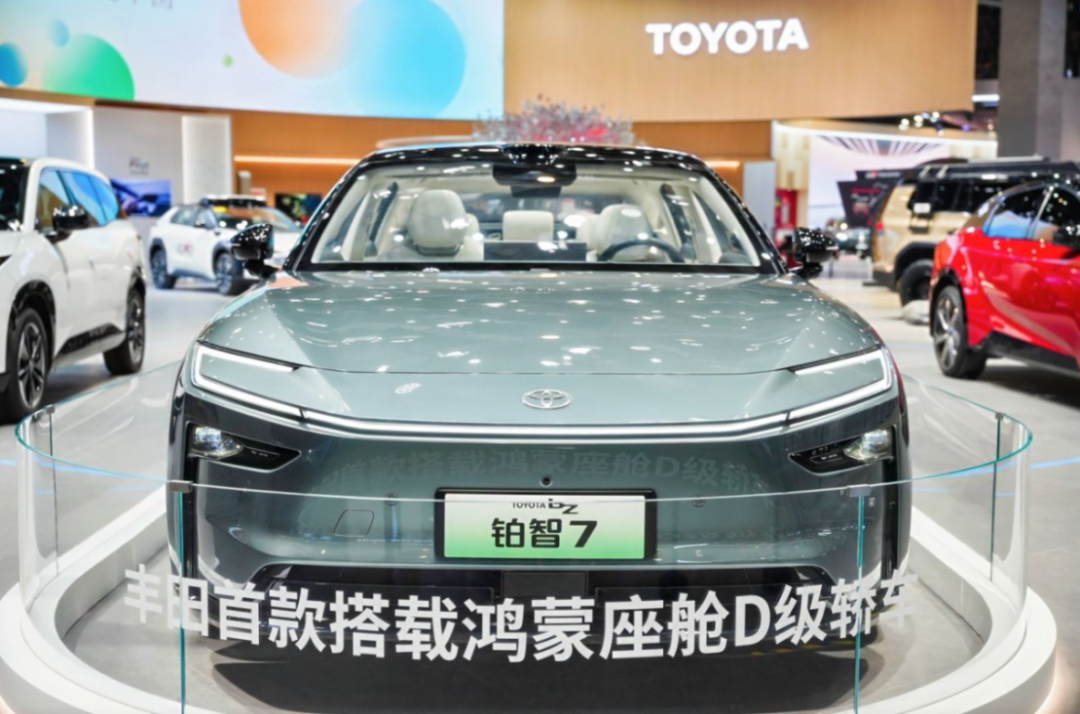 即将上市的铂智7是丰田首款搭载鸿蒙座舱的D级轿车,作为本届进博会的最亮眼车型之一,用精湛的造车工艺与本土化智能科技相结合,吸睛全场。