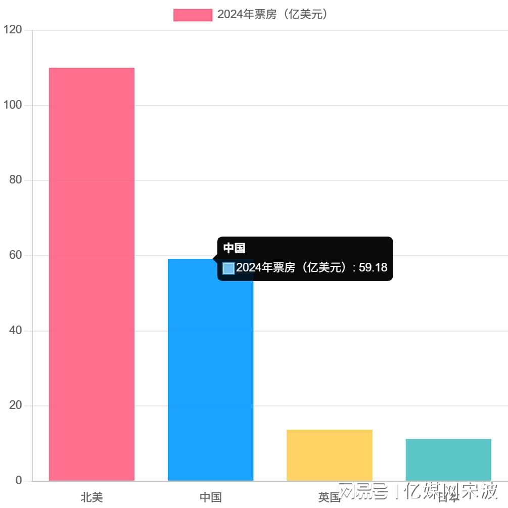 中国已稳固确立了全球第二大电影市场的地位。2024 年,中国电影市场以 59.18 亿美元的票房位列全球第二,仅次于北美市场,占全球票房的 21.39%。虽然票房规模较 2023 年的 77.2 亿美元有所下降,但仍保持着全球第二的位置,且领先第三名英国(13.7 亿美元)和第四名日本(11.2 亿美元)甚远。