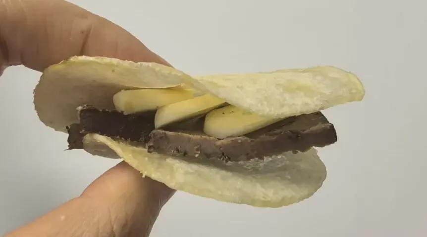 “肝脆蒜了”并不是一道传统意义上的菜肴,而是一种零食的组合吃法。它的核心在于将猪肝、薯片和蒜片混合食用。发明这种吃法的博主将其称为“肝脆蒜了”,谐音“干脆算了”,形成了一个充满戏谑和自嘲意味的网络流行语。