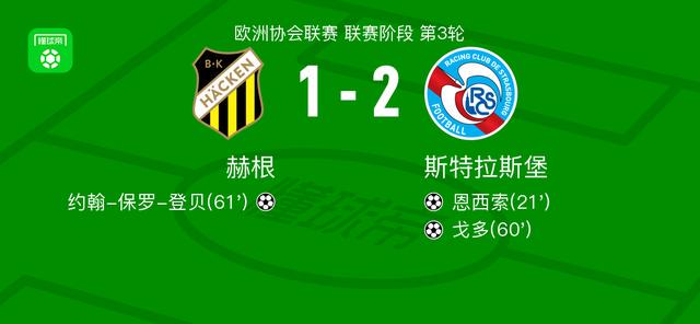 北京时间11月7日,欧洲协会联赛联赛阶段第3轮,赫根与斯特拉斯堡展开对决。比赛中,斯特拉斯堡率先打破僵局,恩西索接戈多的助攻取得进球。此后,阿莫-阿梅亚乌送出助攻,戈多破门扩大比分。随后,赫根由约翰-保罗-登贝扳回一球。最终,全场比分定格为1比2,斯特拉斯堡战胜对手。