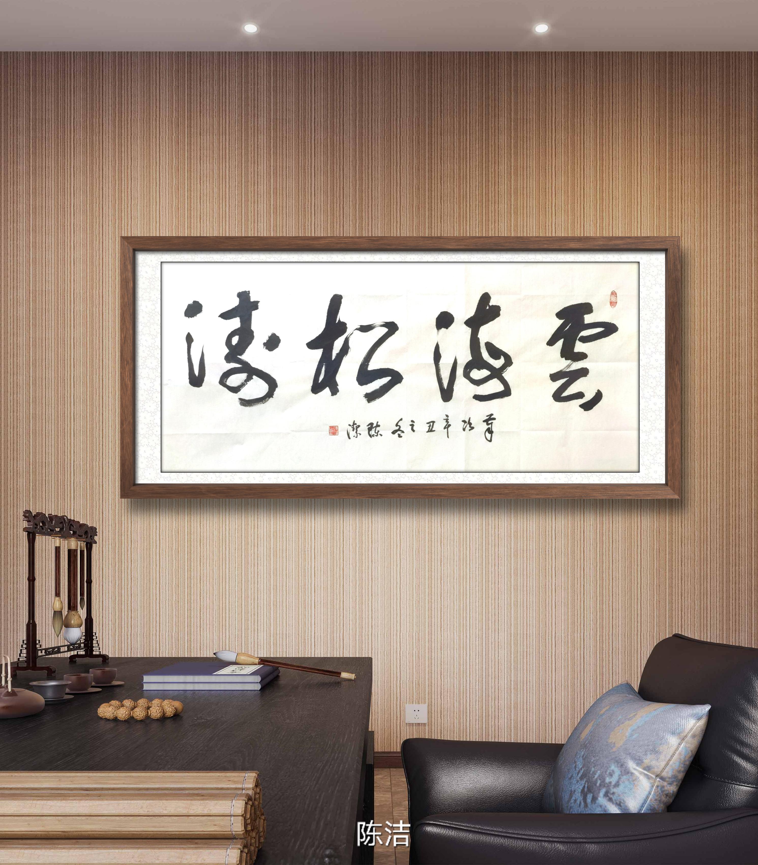 陈洁写了很多传统诗词、名言警句,也写了很多哲思般的妙句,其中有睿智的、有哲理的、有深刻的、有思辨的,还有温馨的、博爱的、浪漫的,包容性很强,内涵也很丰富。有些作品一语天然,禅茶一味;有些作品慷慨磊落,道艺生辉;有些作品含蓄隽永,耐人寻味,一幅幅作品就是一次次人生感悟,一次次人生感悟就是一次次哲理生发,观之,如临沧海,心生浩荡,品之,如抚城垣,神往古今。
