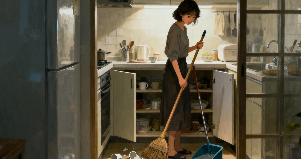 苏沫没有追问他为什么突然摔杯子,只是默默转身走进厨房,从柜子里拿出扫帚和簸箕,准备收拾地上的狼藉。