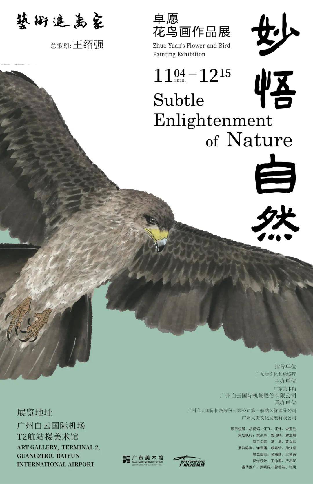 在当下高速运转的都市生活中,人们常困于案牍劳形,疏离了自然,内心渴望一片宁静栖息的绿洲。本次展览匠心独具地分为三个板块:“四时芳华”“田园逸趣”“万物有灵”。从时序更迭到田园情怀,再到万物共生,系统而多维地构建起一个充满生机与哲思的艺术世界。作为广东美术馆“艺术进万家”项目的创新实践,希望通过卓愿的艺术,能够在机场这一人流往来如潮的环境中,引导观者暂缓步履,于审美体验中重新建立与自然的连接,感受天地之大美,获得精神的舒缓与升华,这正是艺术在当代语境下的重要价值与意义。