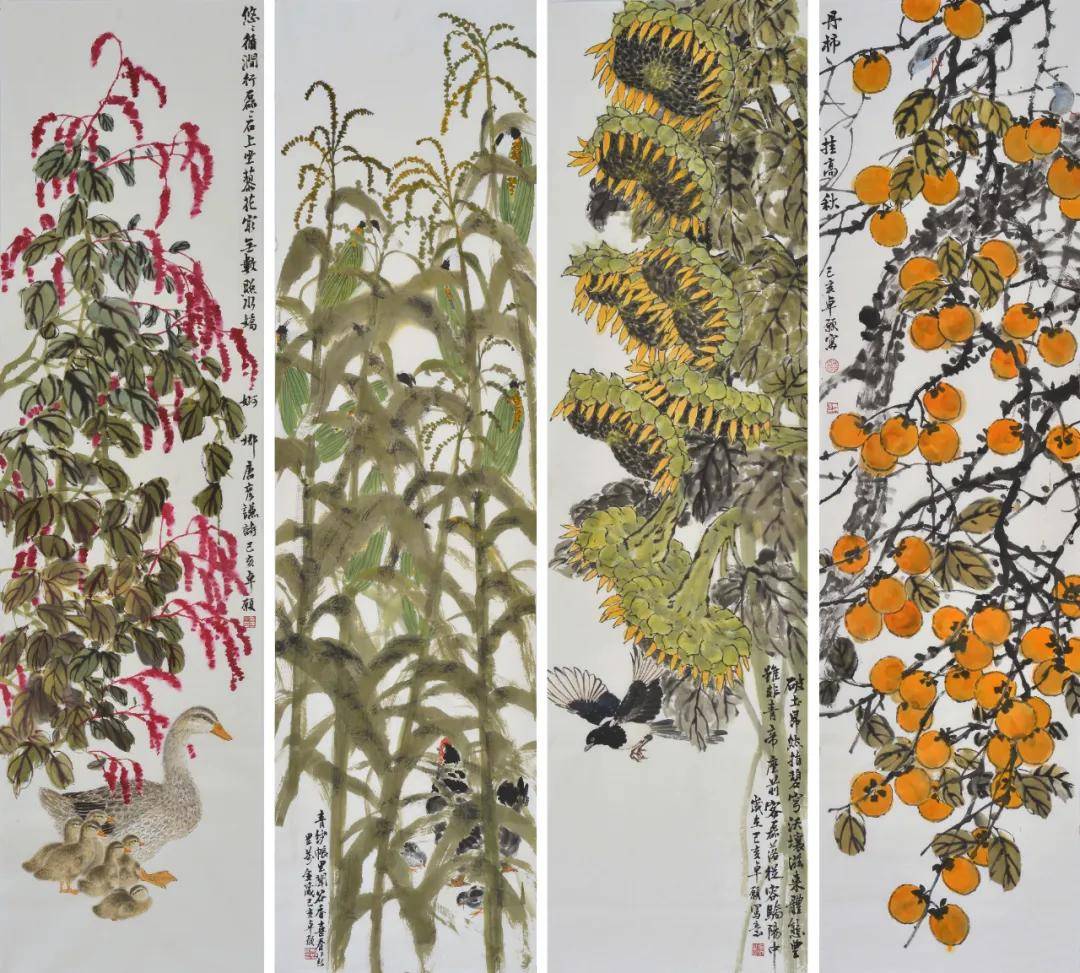 《秋光》 180cm×49cm×4 中国画 2019年