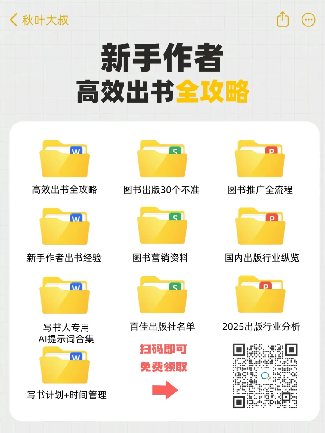 如果你有任何出书疑问,马上通过最后一张海报扫码和图书顾问1对1聊聊,还有《秋叶写书方法论》可以免费领取~