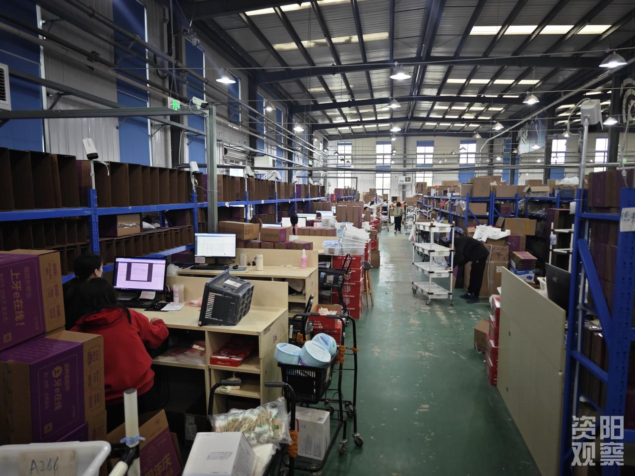 “从早上八点半到岗,打包、分拣、核对订单就没停过,现在日均处理订单量比平时多了近一半,大家都在连轴转抢时效!”11月6日,资阳中国牙谷的牙e在线总仓内,工作人员魏庆额头带着薄汗,手中封装包裹的动作却丝毫未停。仓库里,口腔器械、耗材、药品等各类产品在货架上排列得满满当当,分拣工人往来穿梭,动作麻利地处理订单;货运车稳稳停在出库区,包裹被源源不断地搬上车,每一个环节都紧凑有序,每一处角落都透着“双十一”特有的忙碌劲儿。