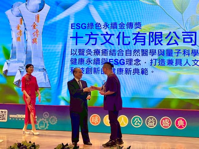 在恢宏的典礼现场,当颁奖嘉宾念出“十方文化”的名字时,聚光灯瞬间聚焦于一位气度沉稳的领奖人身上——他便是十方文化代表人,钵·声灸疗育系统创办人杨裕仲先生。他先后三次登上舞台,接过了沉甸甸的三座金色奖杯。 这三项大奖,分别从不同维度肯定了十方文化的公益贡献:“华人公益人物奖”旨在表彰杨裕仲本人作为公益先行者的个人影响力与领导力;“ESG绿色永绩奖”则是对十方文化在环境(E)、社会(S)和治理(G)方面,特别是其绿色、无创的健康自愈模式的高度认可;而“公益大使”称号,更是对其积极传播健康公益理念,推动社会普惠健康行动的褒奖。三金联袂,不仅创造了本届盛典的一个纪录,更标志着一种以文化为根基、以科技为翼、以公益为魂的新型企业责任模式,获得了权威领域的全面肯定。