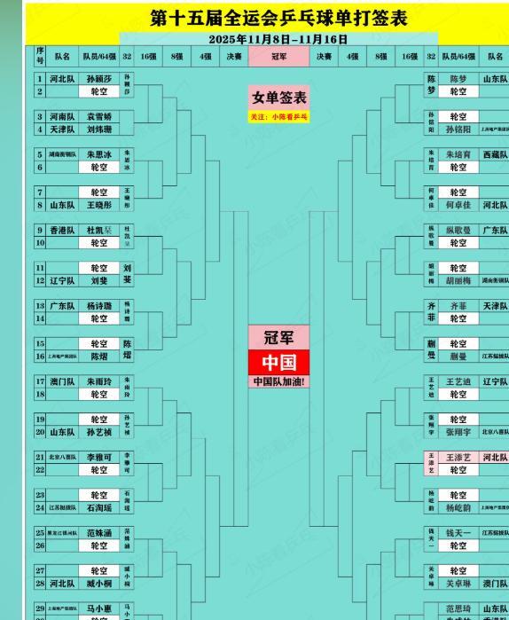 女单这边也是丝毫“不甘示弱”,王曼昱和陈梦,以及王艺迪都在下半区,上半区这边有陈幸同、朱雨玲和孙颖莎。