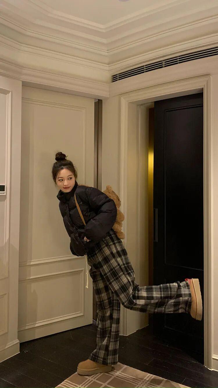 自带垂坠感毛呢面料,非常显瘦"视觉延长十公分,美拉德系格纹裤冬天更加吸晴 内里奥粒绒,颗粒感分明,高密度,更保暖 外层毛呢面料,双层复合,保暖性堪比棉裤