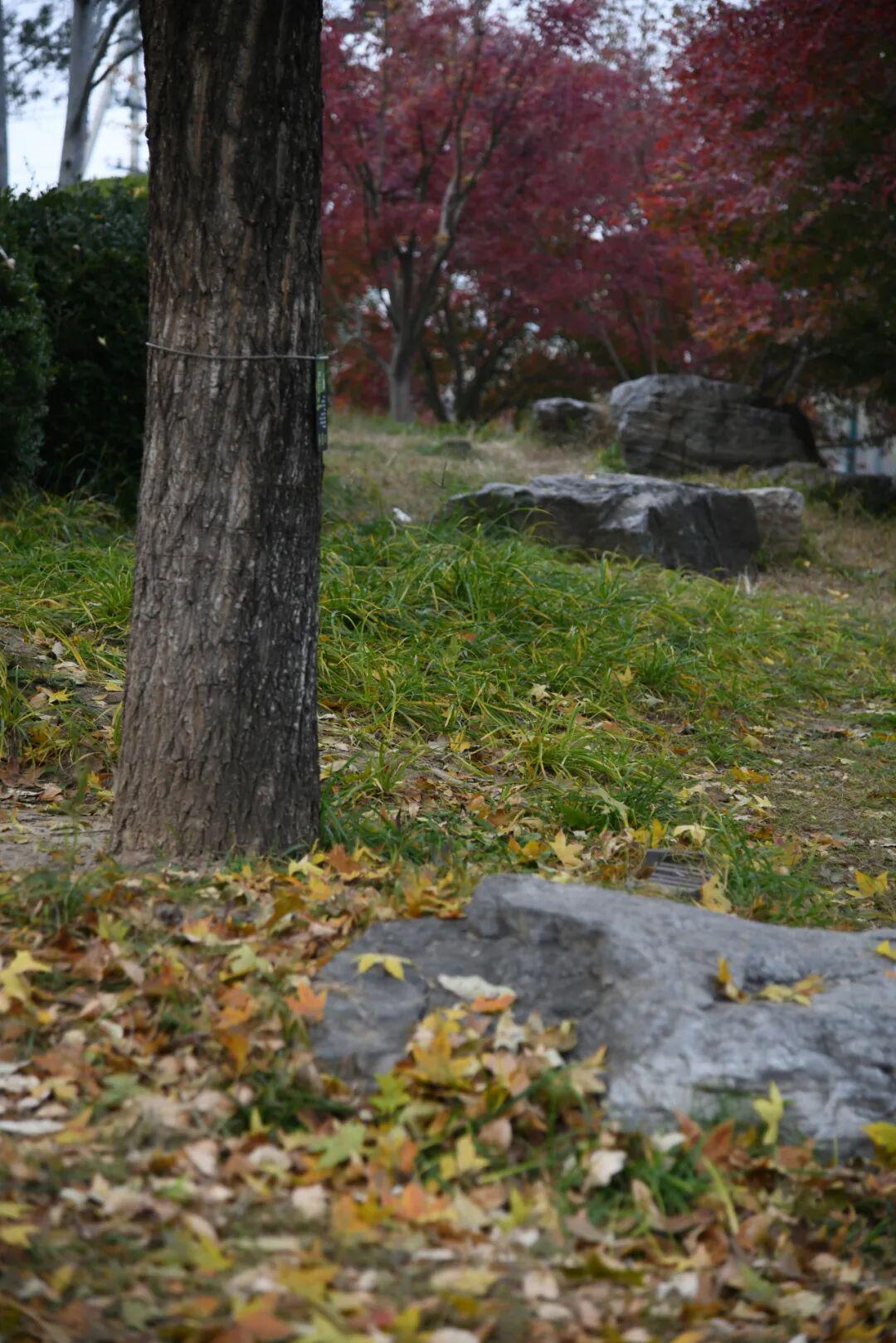 如果说银杏是温柔的秋日私语,那槭树便是热烈的秋日宣言!叶片如火焰般燃烧,红得张扬而纯粹。穿梭在鸡爪槭、元宝枫掩映的小径中,仿佛置身于红色隧道,光影交错间,每一帧都充满故事感。