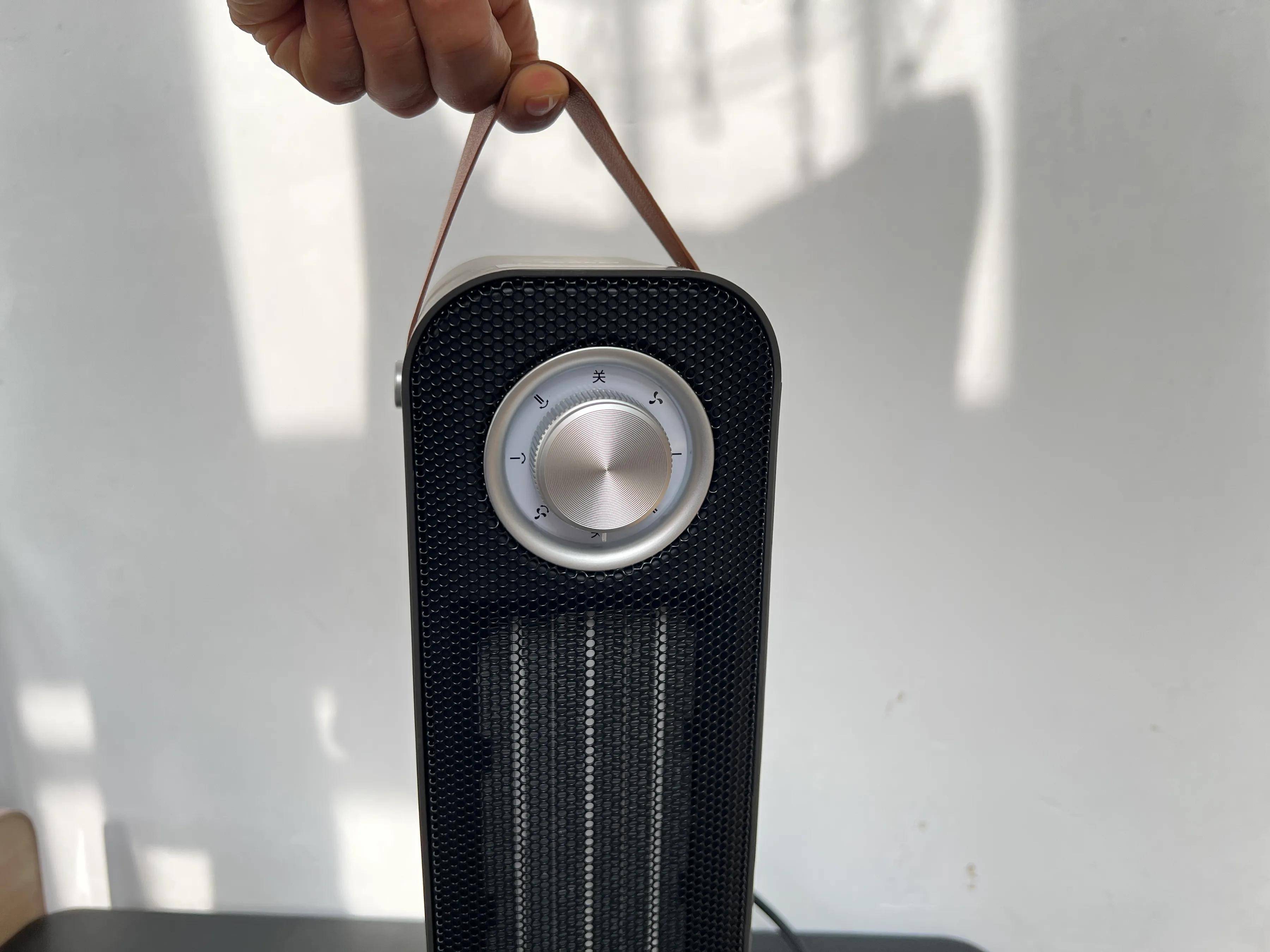 机身外观设计高端时尚很有质感,深灰色的机体外壳搭配了耐高温的金属网罩以及流线型底座,简约又大气;还有那皮质提手和金属色的6挡位调节旋钮,无论放在客厅角落、卧室床边或者办公桌旁,都像一件小巧的艺术品,与多种家居都能完美适配。