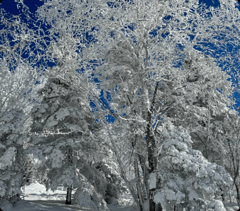 第3天:穿越原始森林是行程里最让人难忘的环节,出发前向导仔细检查每个人的装备,反复提醒一定要穿防滑雪地靴。踩在没过脚踝的积雪里,“咯吱咯吱”的声响在林间回荡,像极了雪地专属的背景音乐。沿途的景色更是让人挪不开眼:圆滚滚的“雪蘑菇”在风里轻轻晃动,松枝上的雾凇被阳光照得像碎钻般闪烁,抬手一碰就簌簌往下掉;茫茫林海与蓝天连在一起,“中国冰雪在龙江”的壮美画面在眼前展开,把对雪的所有美好想象都变成了现实。走累了就停下来歇会儿,向导递来的热姜茶喝一口,暖意从胃里慢慢散开,整个人都浸在这片北国风光的惬意里。