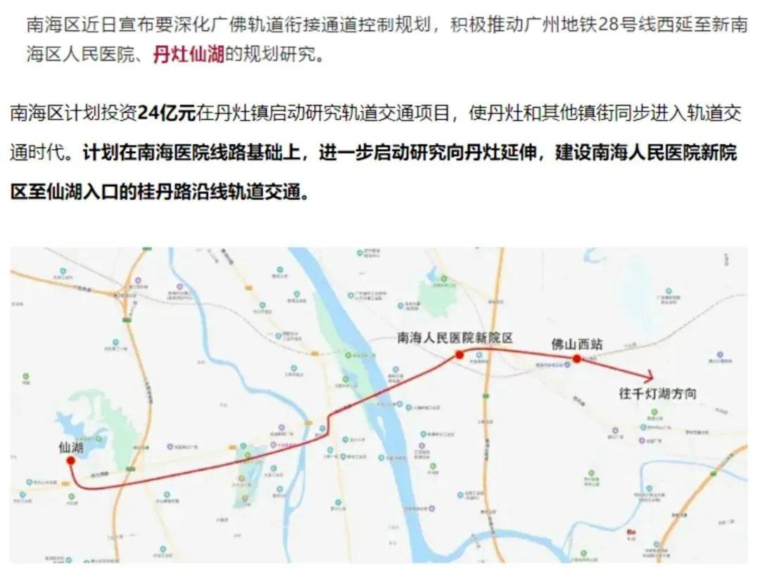 为拓展广州1小时交通半径,打造广佛超级城市,南海区近日宣布将深化广佛轨道衔接通道控制规划,积极推动广州地铁28号线西延至南海人民医院、丹灶仙湖的规划研究。