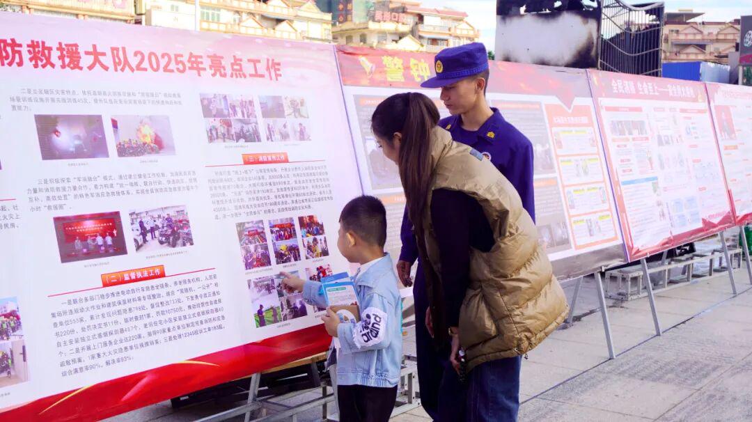 本次活动,平南县消防救援大队以“火灾实验+消防竞赛+安全科普”等方式开展多元化消防科技宣传活动,通过设置消防装备器材展示区、火灾模拟实验区、消防竞赛区、消防灯谜竞猜区、消防知识科普区、疏散逃生体验区、安全知识展示区等,邀请过往群众沉浸式互动体验游戏,为参与的群众上了一堂生动又有趣味的消防安全“公开课”。
