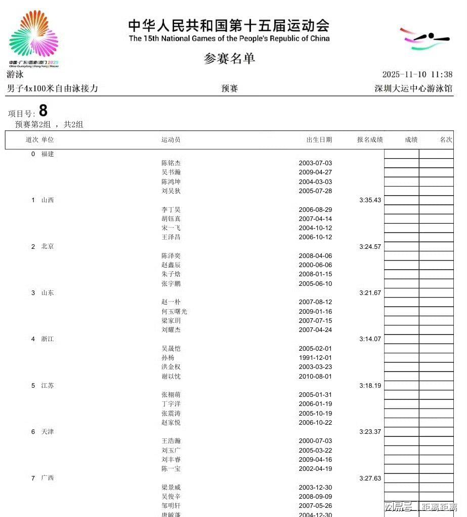 翻看游泳比赛秩序册,我们在男子4*100米自由泳接力预赛浙江阵容中,意外发现了孙扬的名字。如果孙扬真的游接力,这意味着孙扬将在不到2个小时的时间内,连续出战两场比赛,同时还要在晚上的400米自由泳决赛中登场,不知道34岁的孙扬体力能否支持住。