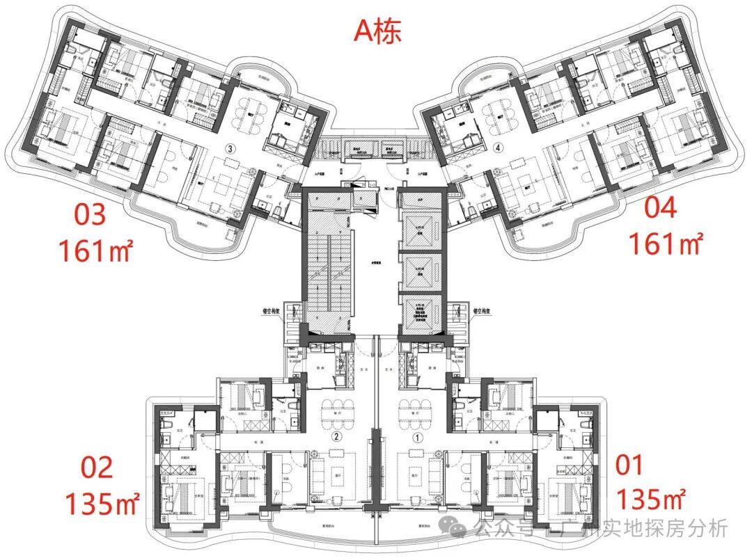 璇湾B区2A栋:46层,3梯4户,135.161平,2026年1月交楼,管理费4.53元,3.1米层高,15层和31层是避难层。