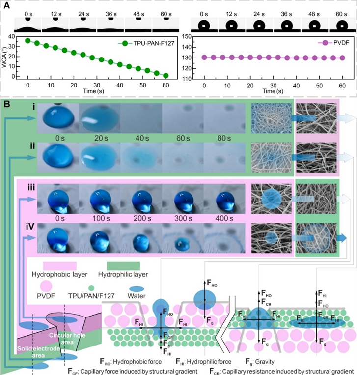 图4. 双梯度Janus膜液体定向传输原理与功能演示