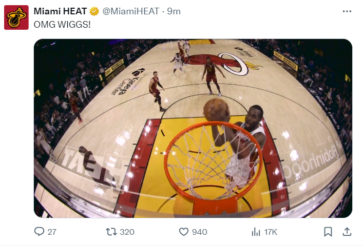 热火官方高呼安德鲁-维金斯!!!!这是属于维金斯的夜晚,他被交易到迈阿密后一直不温不火,人类18分精华退化到人类15分精华,很多人都说热火这笔交易输麻了。