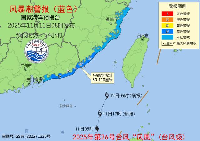 记者从自然资源部获悉,受今年第26号台风“凤凰”和冷空气共同影响,预计今天(11日)上午到12日上午,南海北部、中部将出现7到10米的狂浪到狂涛区,福建宁德到广东汕尾沿海将出现50到110厘米的风暴增水。国家海洋预报台继续发布海浪橙色警报和风暴潮蓝色警报。请在上述海域作业的船只注意安全,沿海各有关单位提前采取防浪避浪措施。