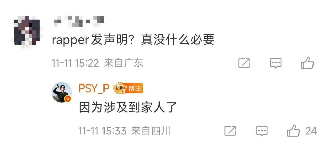 同时,PSY.P也回应发声明是因为涉及到了家人!