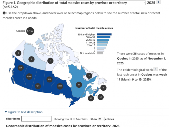 2025年加拿大共报告5162例麻疹病例,其中超 80% 来自安大略省和艾伯塔省。目前,美国疾控中心(CDC)建议所有前往加拿大的旅行者,确保完成麻疹疫苗全程接种。