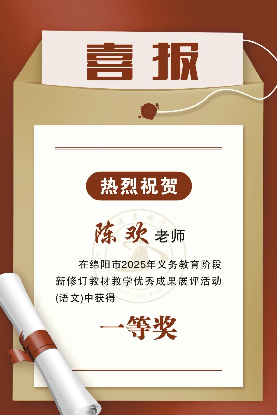 热烈祝贺我校三位青年教师在绵阳市2025年义务教育阶段新修订教材教学优秀成果展评活动中斩获一等奖