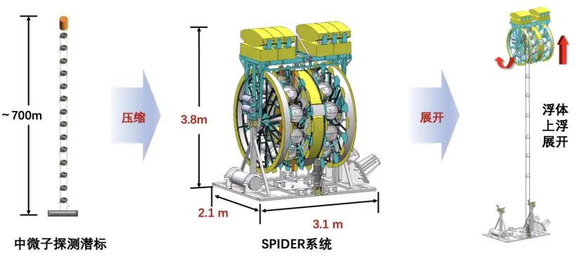 近日,我国深海中微子探测技术取得重大进展:上海交通大学自主研制的柔性潜标精密布放装置“蜘蛛系统”成功完成全功能海试,实现近底悬停、水下机器人辅助解锁、串列自主上浮与展开等一系列高难度动作。